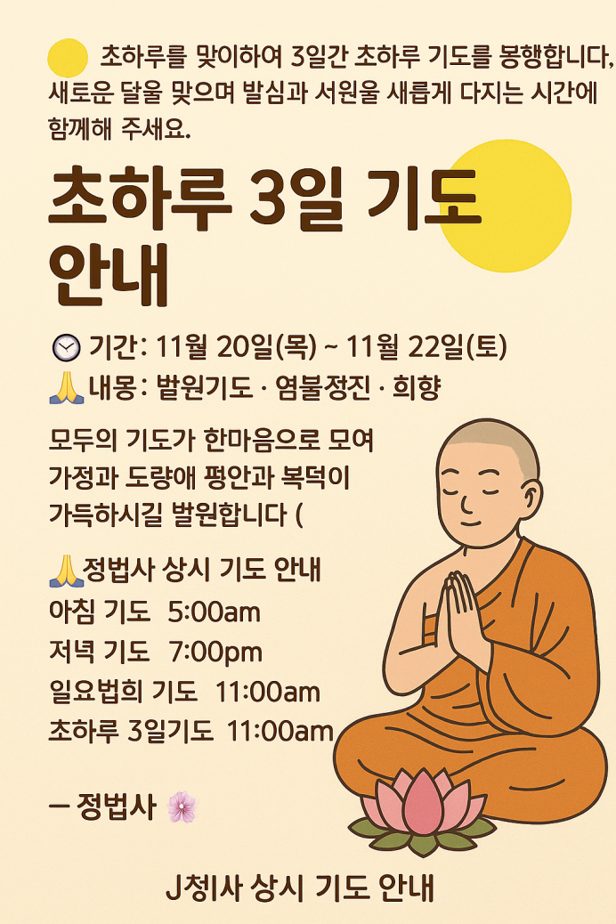 2025년 11월 초하루 3일 기도 안내 (11월 20일~22일)