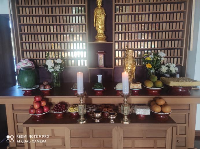 49일간의 법음과 정성어린 음식공양(3종과일, 떡, 5종나물 등)을 올립니다.